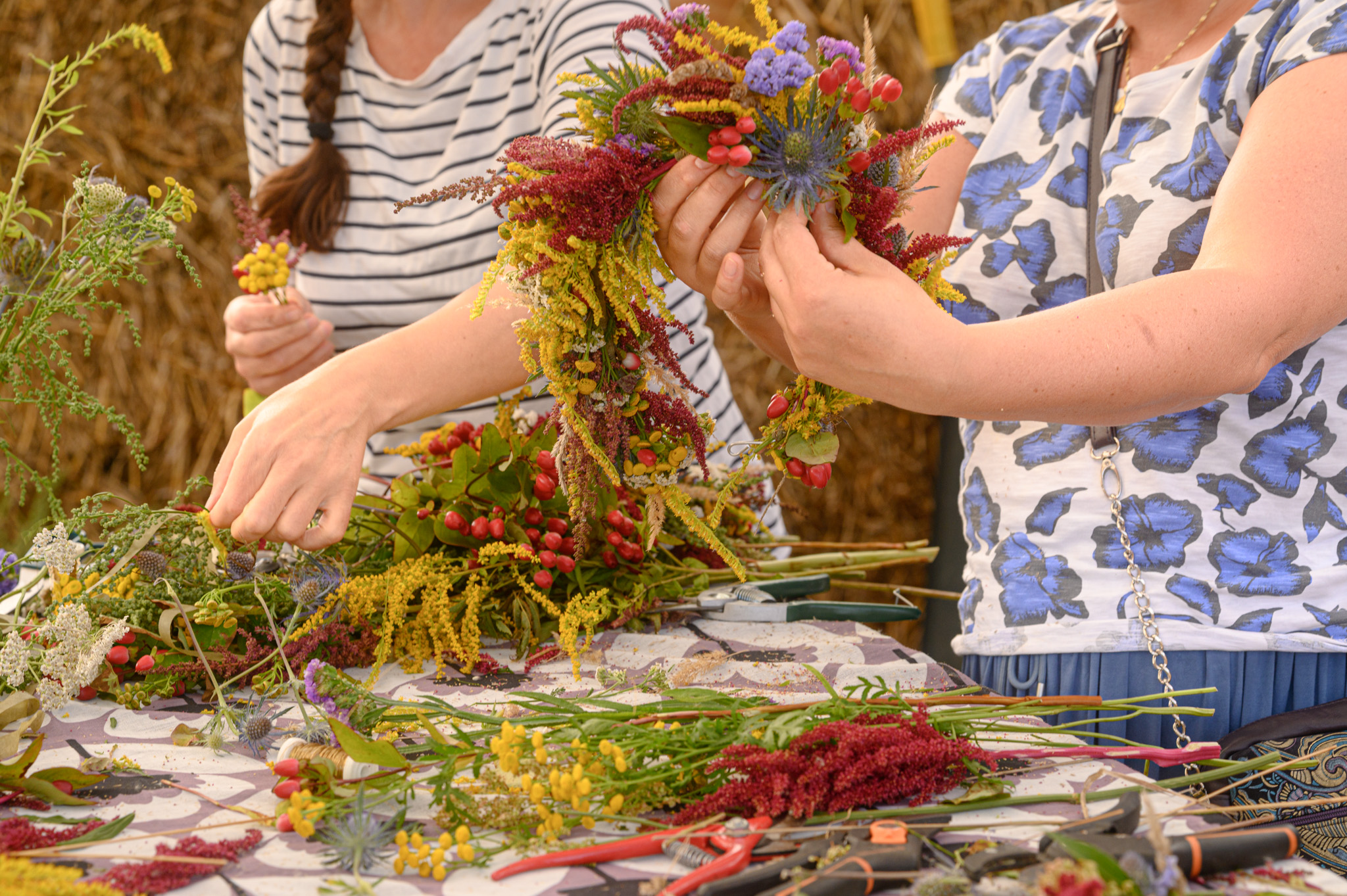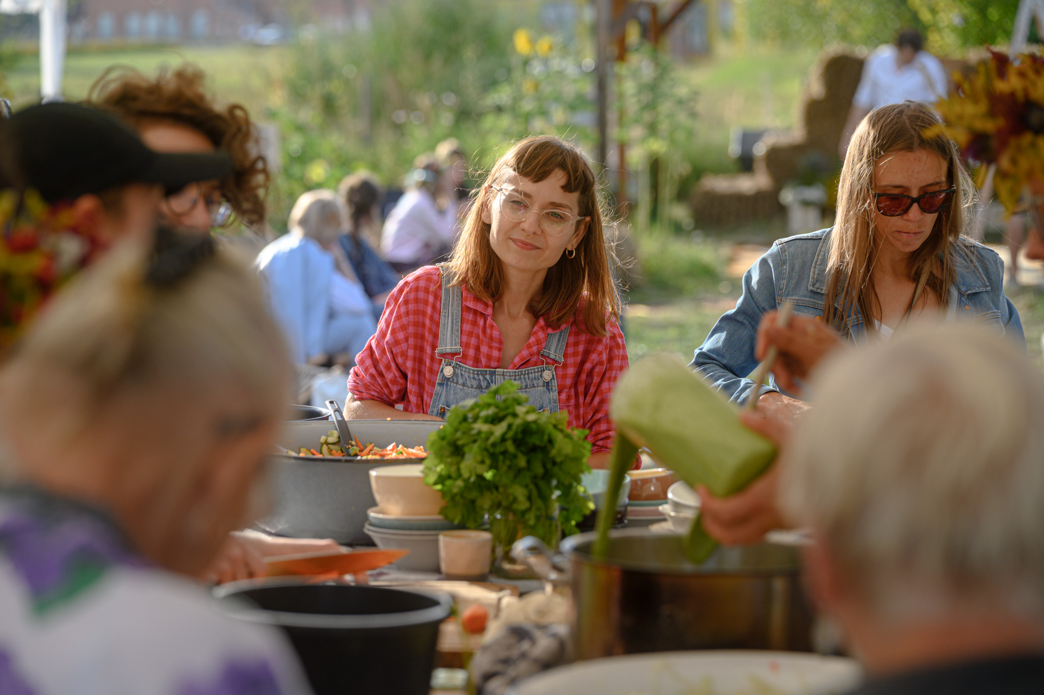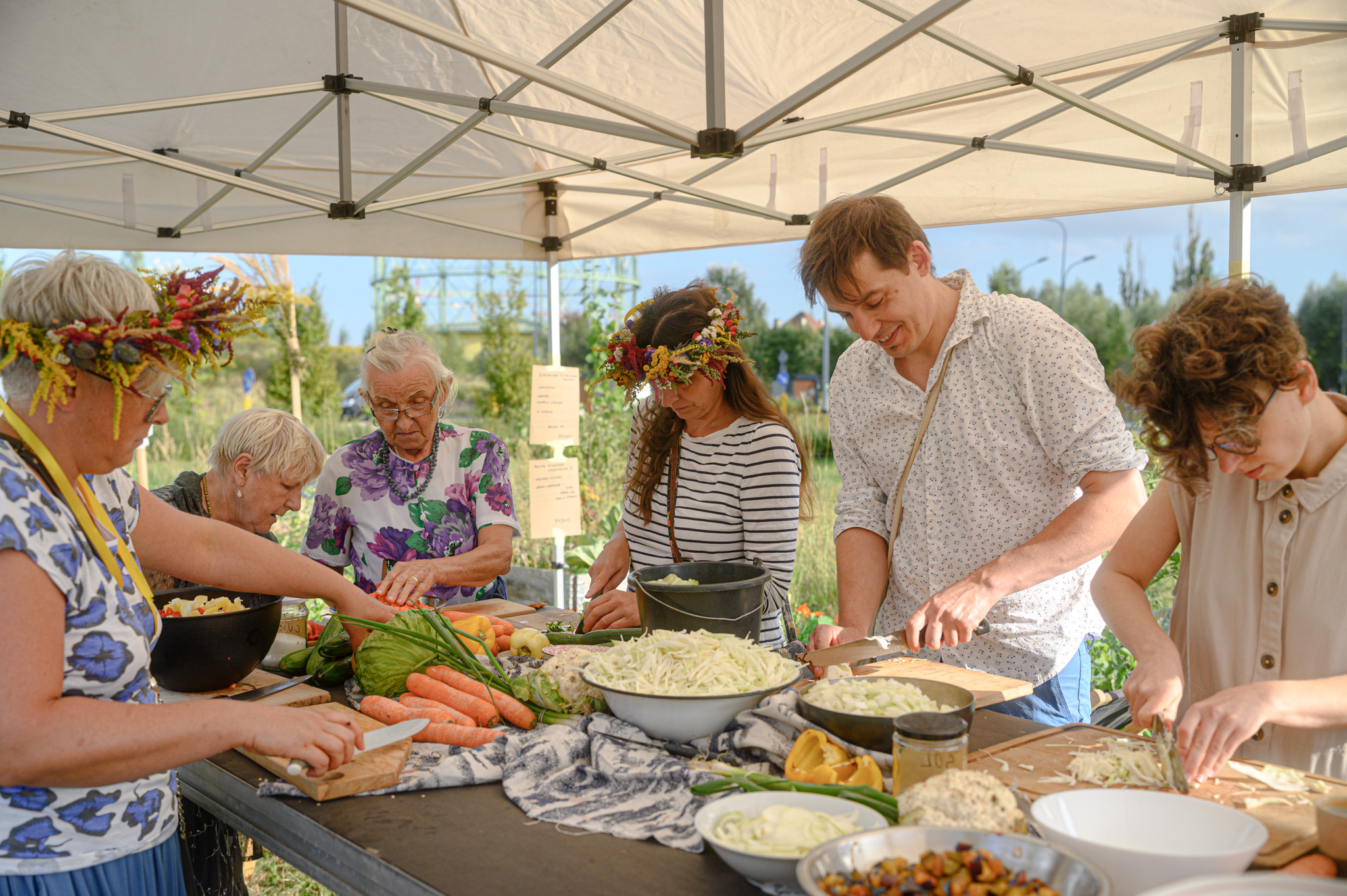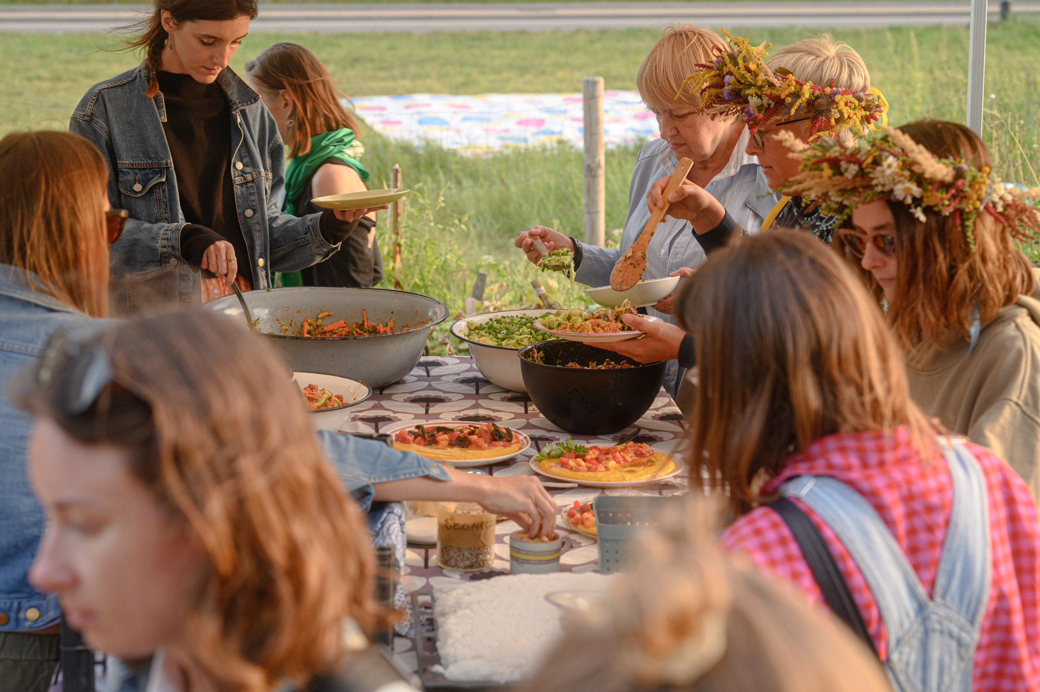 To wydarzenie łączyło tradycję kaszubskich òżniwinë z warsztatami, które otwierały ją na współczesną interpretację: lepieniem czarek z lokalnej gliny, haftem kaszubskim, robieniem kwiecistych wieńcy, przygotowywaniem przetworów, kombuchy czy wspólnym gotowaniem. Dzięki temu Dożynki były okazją do współtworzenia – doświadczania tradycji przez działanie, relacje i bycie razem.