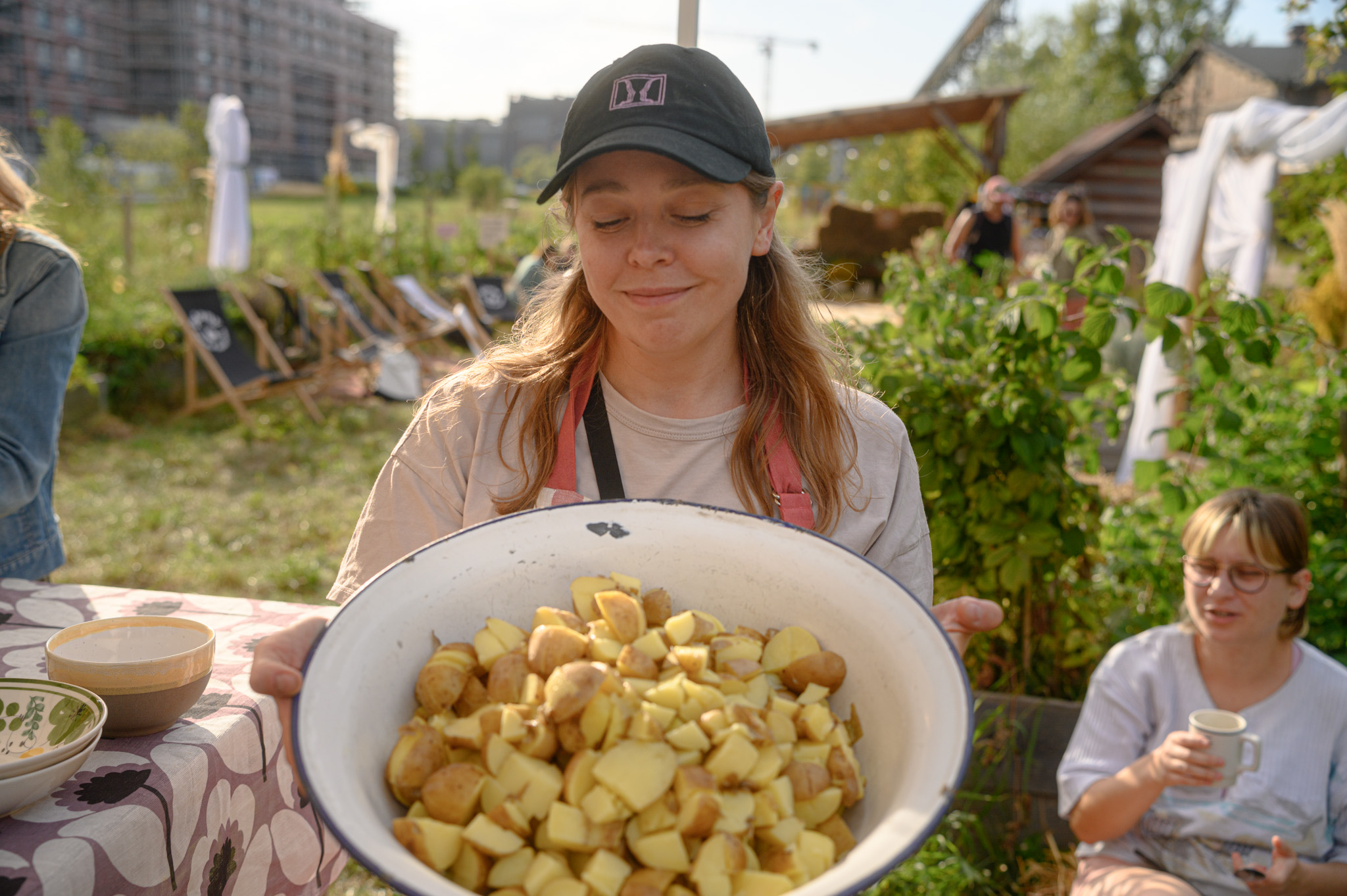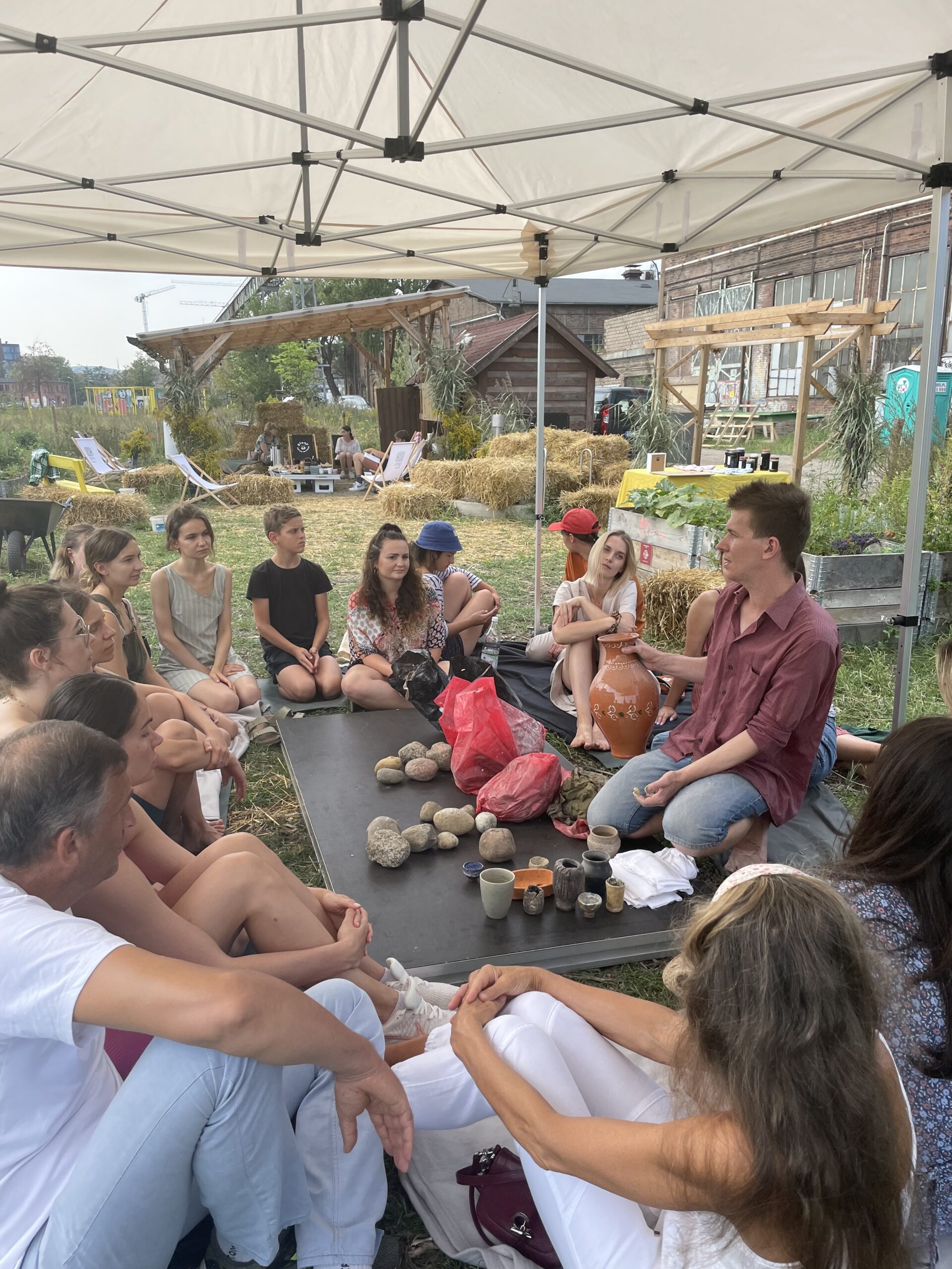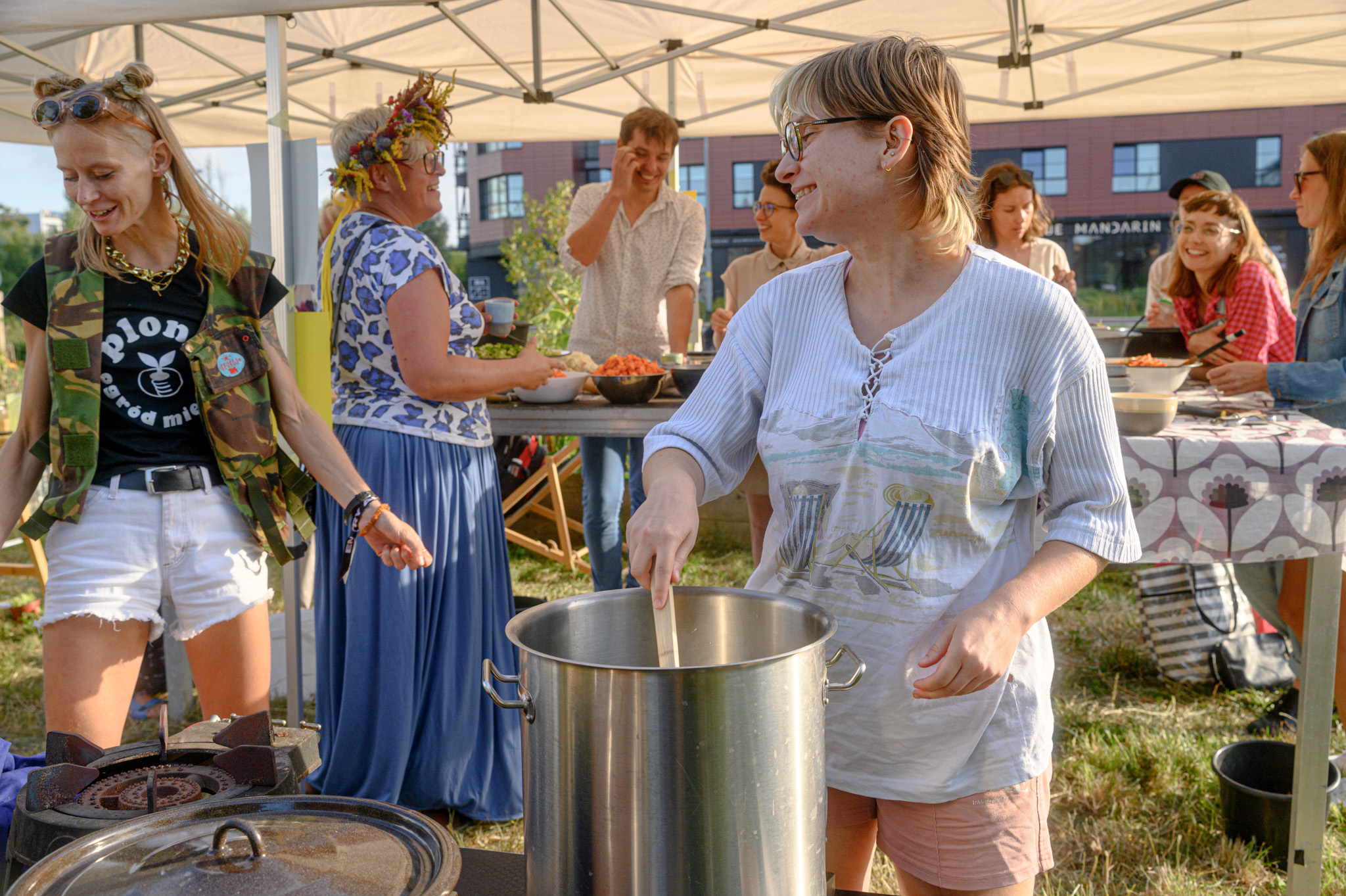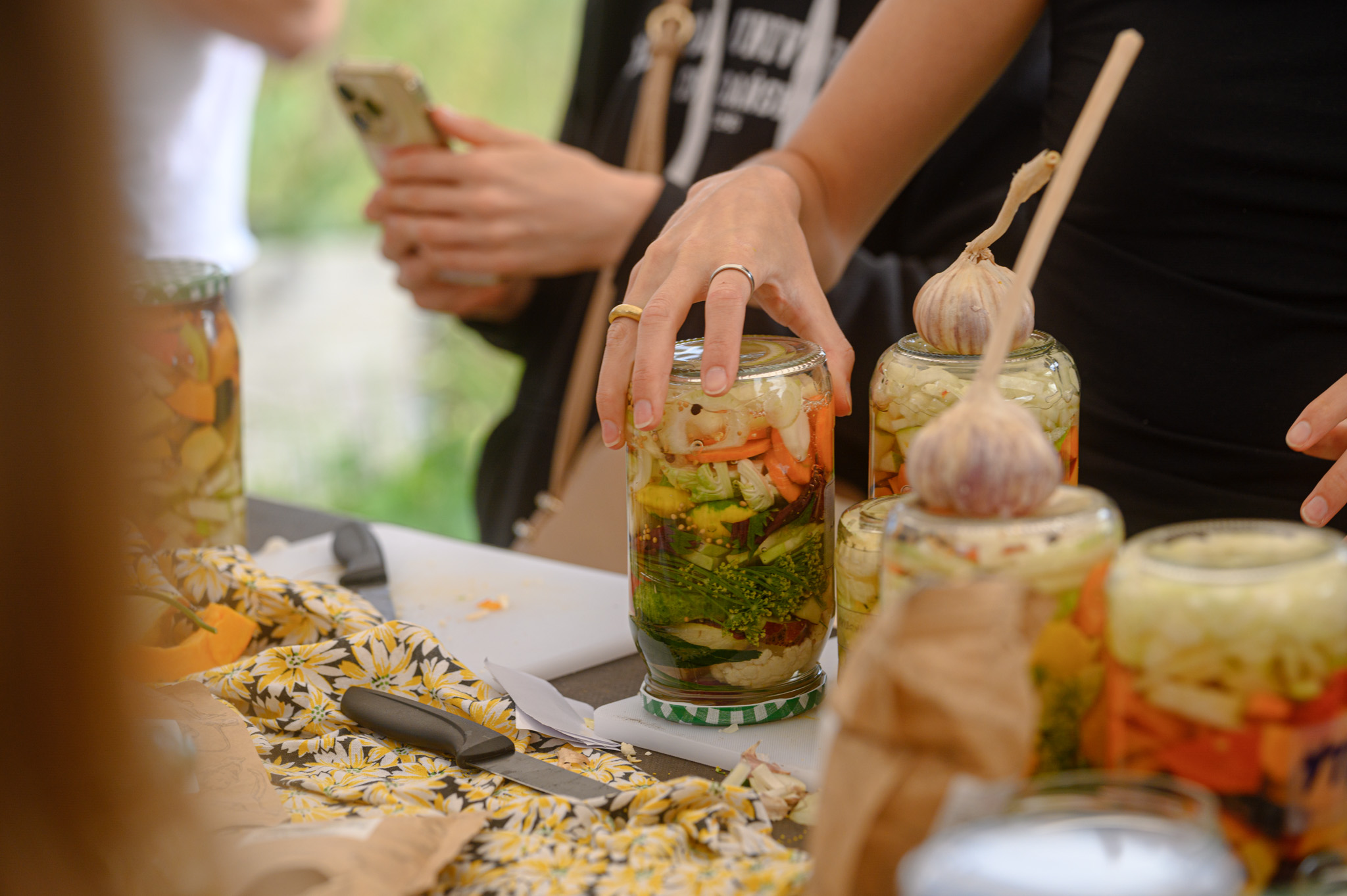 To wydarzenie łączyło tradycję kaszubskich òżniwinë z warsztatami, które otwierały ją na współczesną interpretację: lepieniem czarek z lokalnej gliny, haftem kaszubskim, robieniem kwiecistych wieńcy, przygotowywaniem przetworów, kombuchy czy wspólnym gotowaniem. Dzięki temu Dożynki były okazją do współtworzenia – doświadczania tradycji przez działanie, relacje i bycie razem.